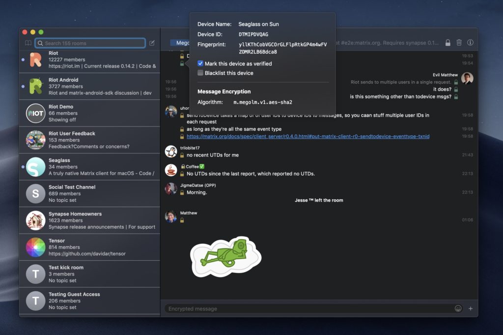 The result is the release of Client Server API version 0.4. This is a huge update - increasing the size of the CS API by ~40%. The biggest new stuff includes fully formalising support for end-to-end encryption (thanks to Zil0!), versioning for rooms (so we can upgrade rooms to new versions of the protocol), synchronised read markers, user directories, server ACLs, MSISDN 3rd party ids, and .well-known server discovery (not that it's widely used yet), but for the full picture, best bet is to look at the changelog (now managed by towncrier!). It's probably fair to say that the CS API is growing alarmingly large at this point - Chrome says that it'd be 223 A4 pages if printed. Our solution to this will be to refactor it somehow (and perhaps switch to a more compact representation of the contents).