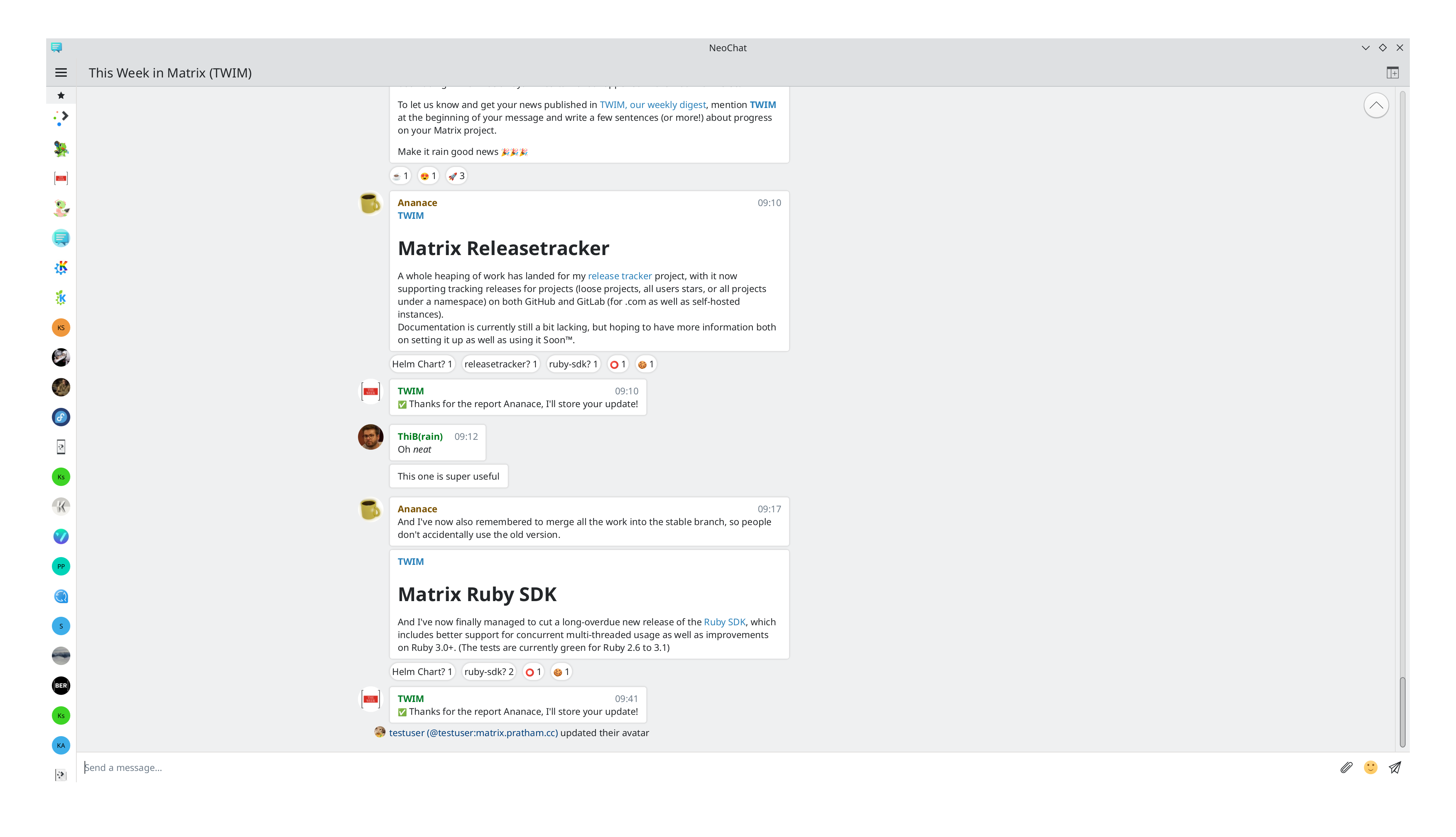 This week, the team released version 0.9.12. In this version, we updated our Matrix API Lite package, in which we fixed the issue with the room hierarchy endpoint with some improper parsing and wrong type coming from the generation of the spec Open API documentation.